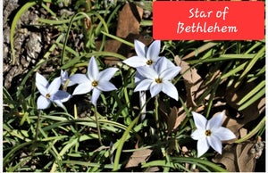 Look a likes – Star of Bethlehem (Poisonous) Star of Bethlehem have white flowers with 6 pedals and have a distinct white rib running down the middle and do not produce a garlic smell.